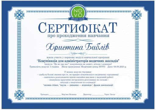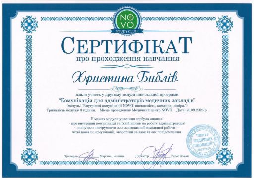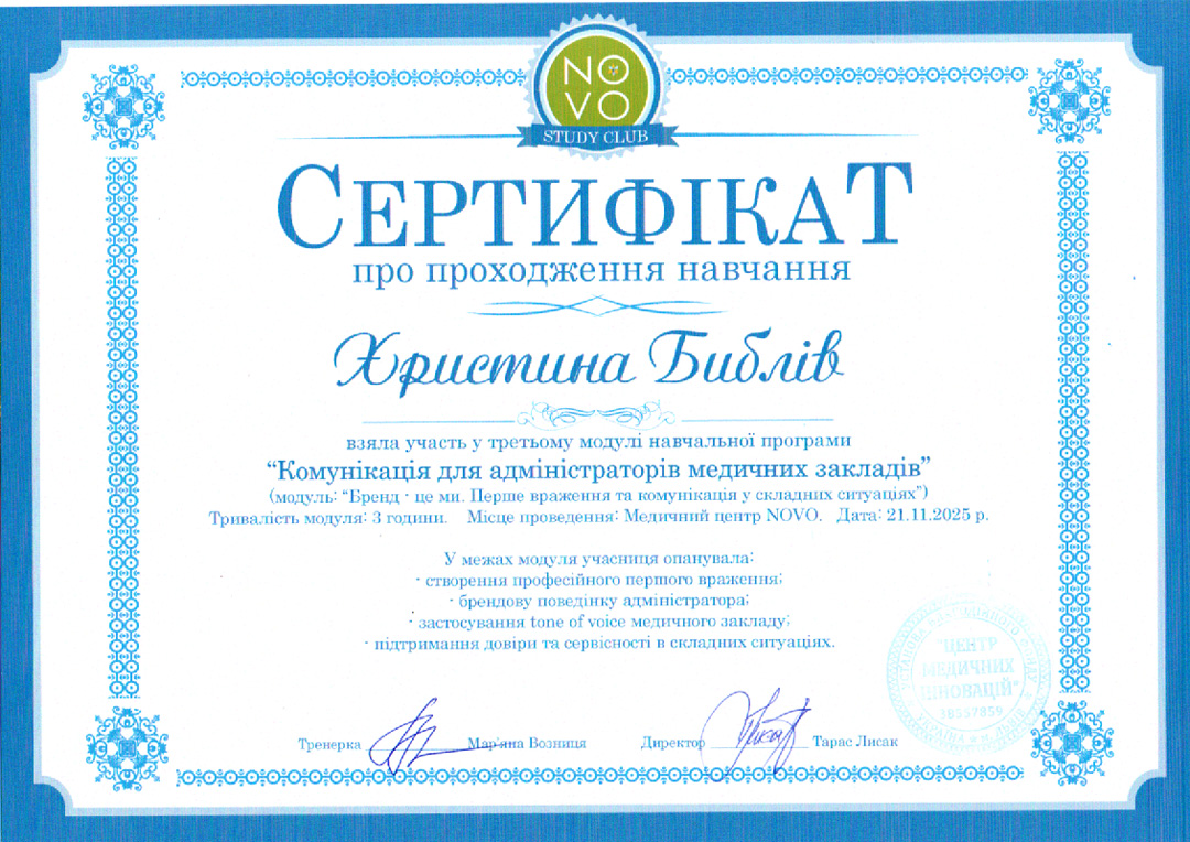 Оксана Маковецька найкращий спеціаліст узд-діагностики. Дякую клініці "Novo", за турботу та увагу до деталей